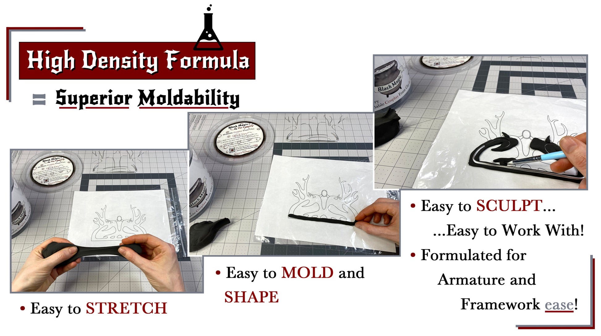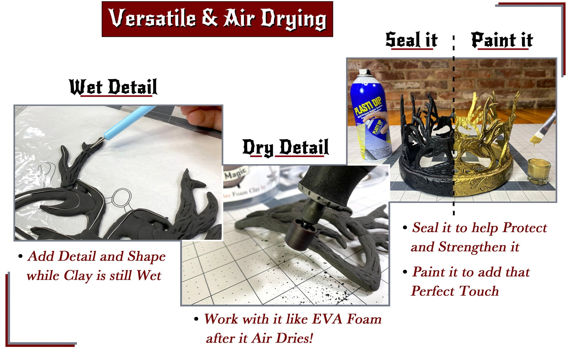 Moldable Cosplay Clay is fantastic for any and all Cosplay, Costume or Crafting projects. Sculpt, shape, or press virtually any design that your mind can conceive. After you are done working with the clay simply let it dry for up to 42 hours or more, allow 1-2 extra days for thicker designs. Once dry, it magically becomes like EVA Foam, able to cut, sand, Dremel, heat shape and even adhere to EVA Foam with contact cement or your favorite adhesive. You can also prime and paint to your liking. All the things you love to do with EVA Foam. Black Magic’s Moldable Foam Cosplay Clay can be used for:
