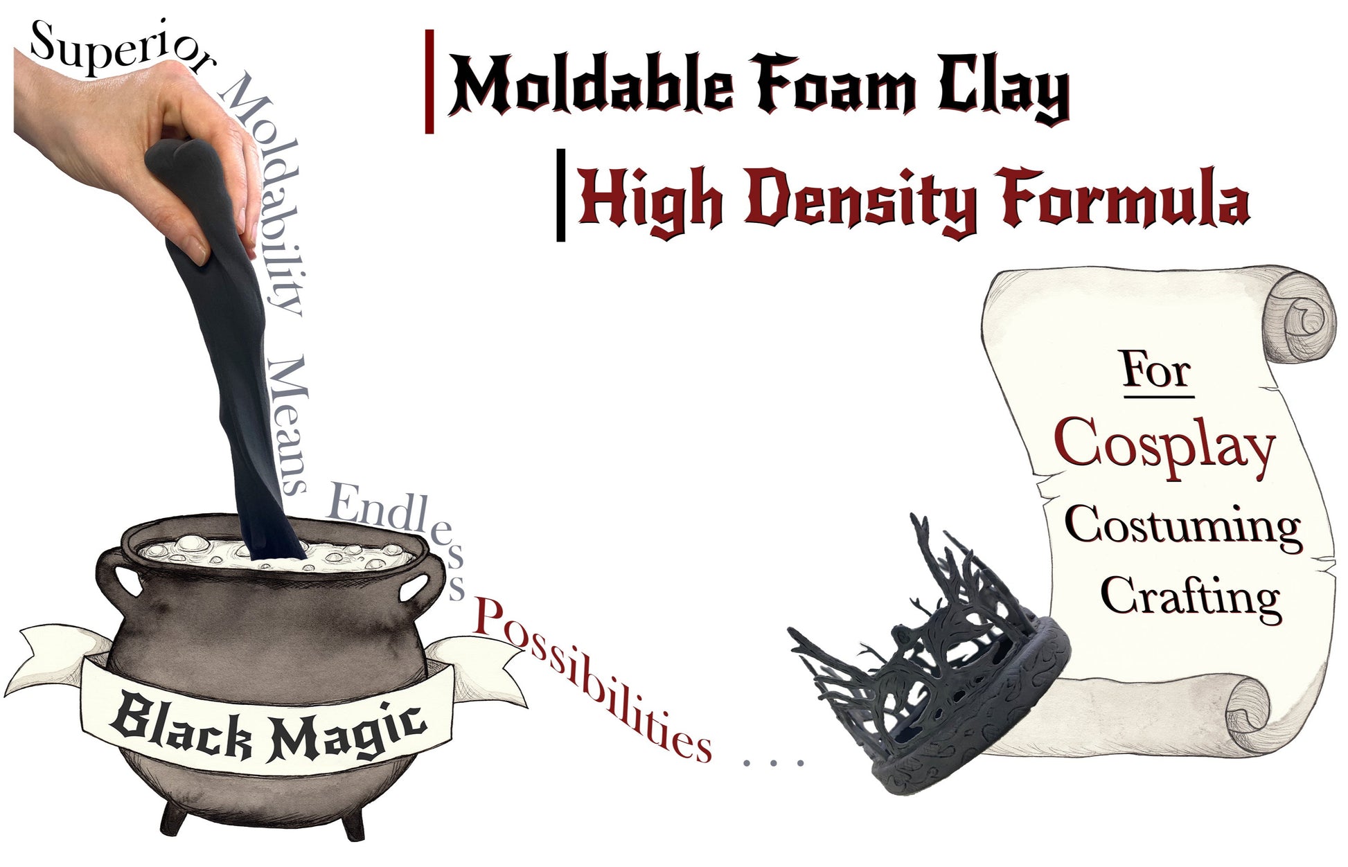Black & White Magic, by The Foamory, is an Air Dry Moldable Foam Clay for Cosplay. Our new High Density Formula allows us to supply you with the highest quality Foam Clay and an actual 300 & 900 grams of product in every container! Unlike most of our competitors who use a less dense version, something they don’t like to point out…
